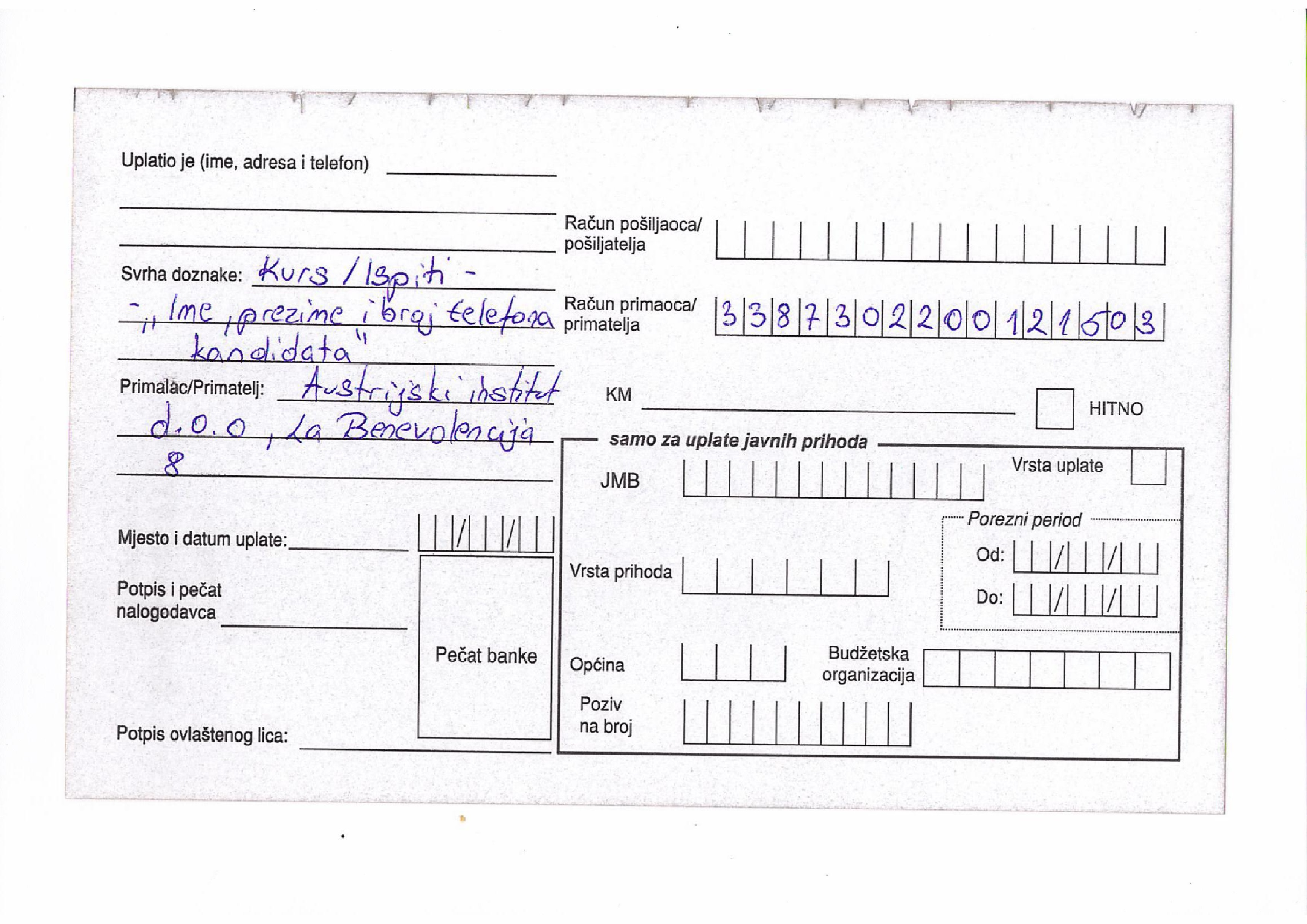 PRIMJER UPLATNICE možete pronaći OVDJE.